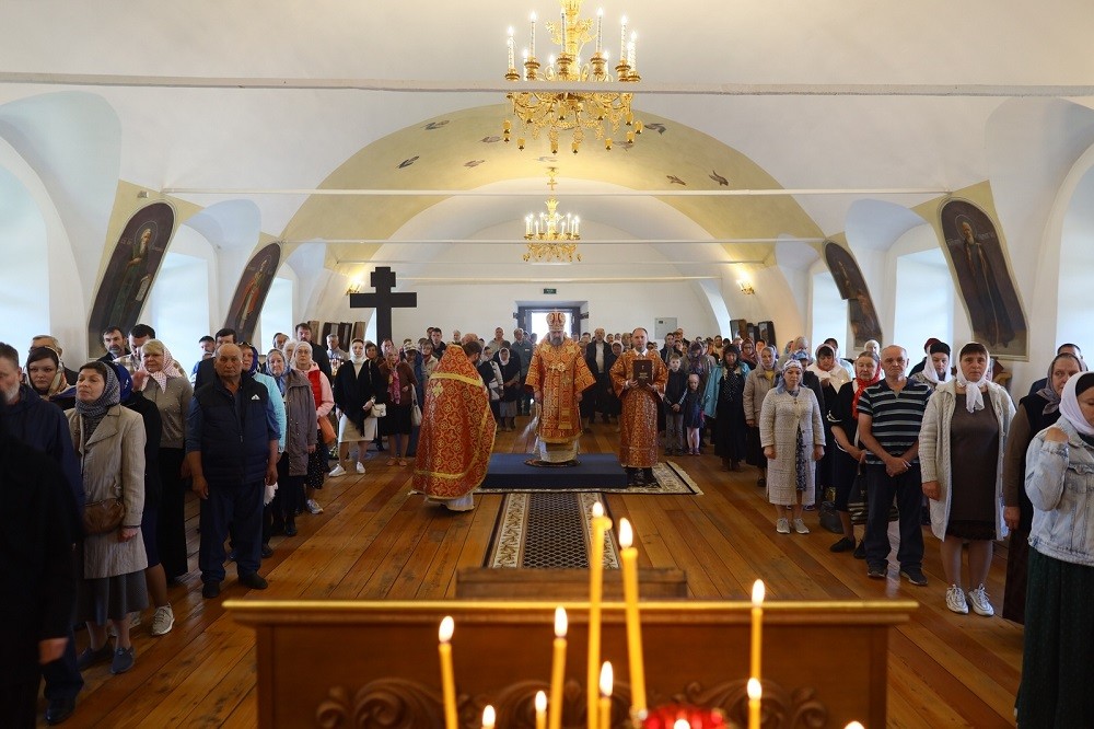 Его Преосвященству сослужили секретарь Скопинской епархии иерей Антоний Русанов, клирики монастыря и духовенство епархии.