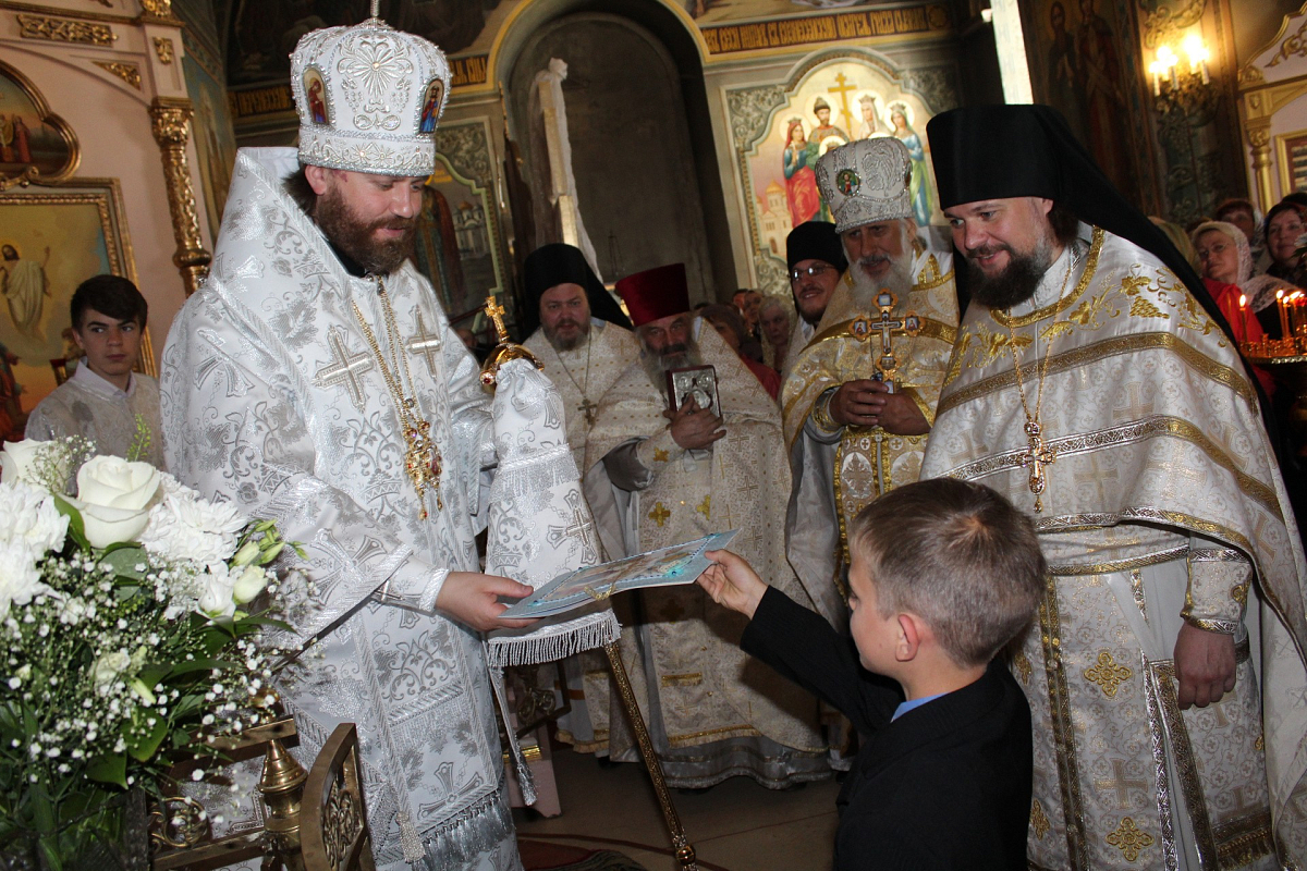 С праздником Вознесения Господня епископа Фому поздравили настоятель Вознесенской обители игумен Марк, воспитанники реабилитационного центра «Островок» и детского дома, а также руководитель подростково-молодежного движения при Вознесенском монастыре «Добровольцы милосердия» Татьяна Лобанкина.