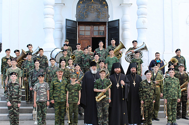 На соборной площади для гостей праздника состоялся концерт детского казачьего духового оркестра под управлением Виктора Осипова.