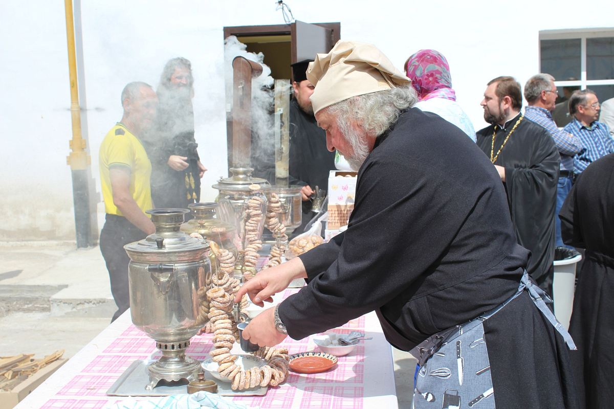 Затем, по монастырской традиции, прихожане и паломники приняли участие в совместном чаепитии, после которого епископ Фома пообщался с прихожанами.