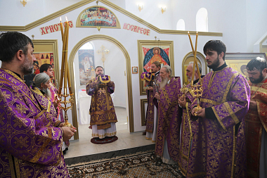 Затем архипастырь возглавил в стенах храма Божественную литургию.