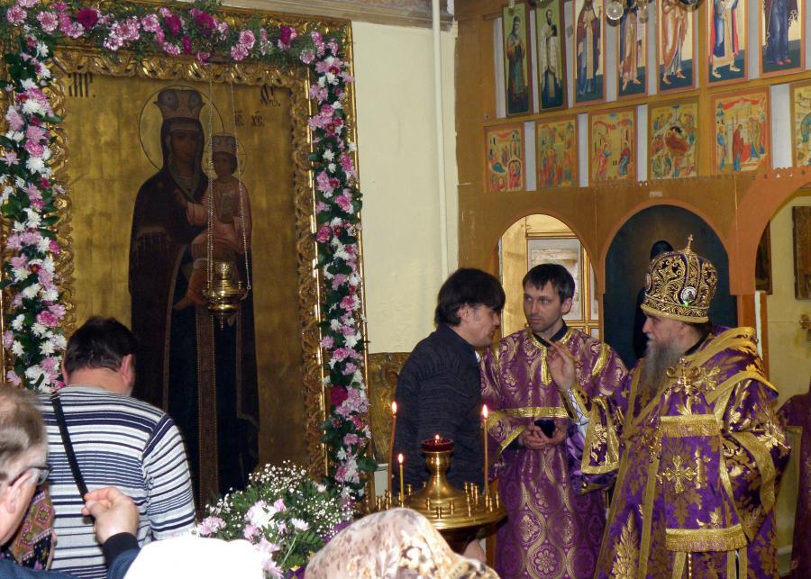 Далее было совершено молебное пение перед иконой Божией Матери с коленопреклоненными молитвами.