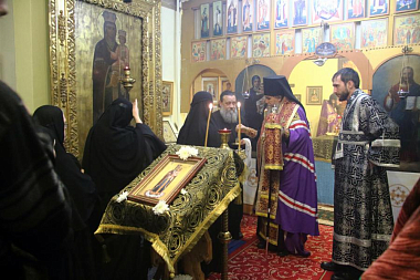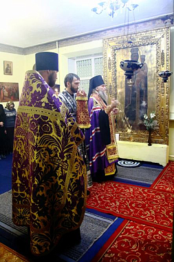 18 марта 2019 года епископ Рыбинский и Даниловский Вениамин совершил всенощное бдение накануне празднования в честь иконы Божией Матери «Благодатное Небо» в домовом храме святого праведного Иоанна Кронштадтского архиерейского подворья Вауловский скит.