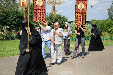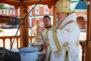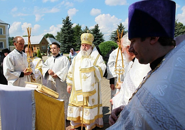 По случаю престольного праздника духовенство во главе с правящим архиереем совершили крестный ход и молебен с водосвятием.