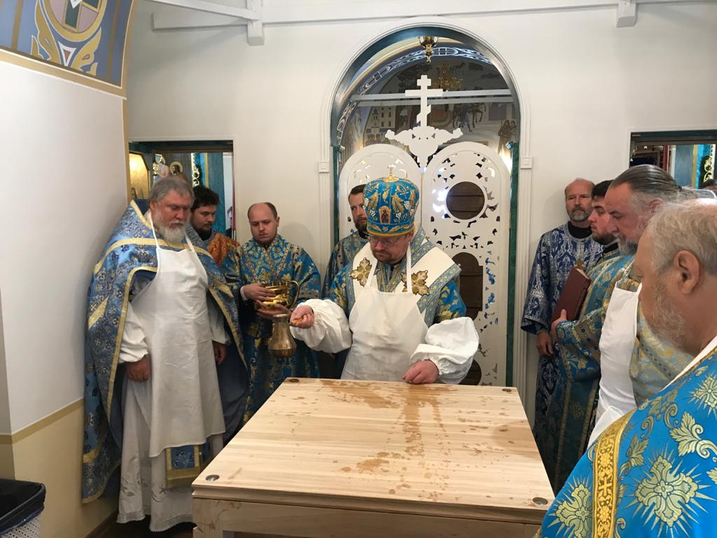 Владыка Игнатий возглавил крестный ход вокруг храма с мощами преподобномученика Фомы Зографского, которые затем были помещены основание престола храма.