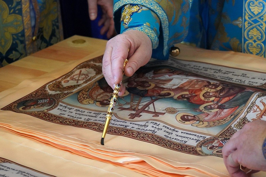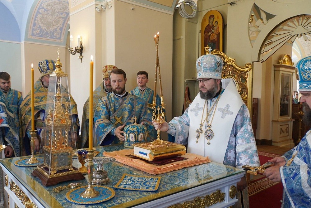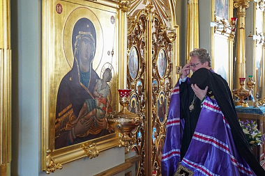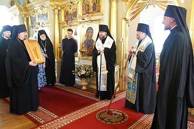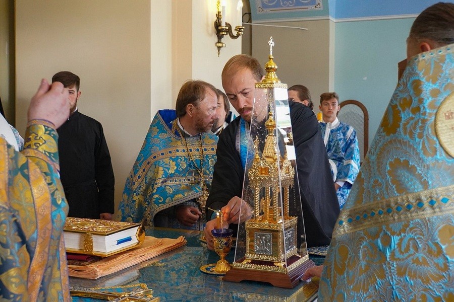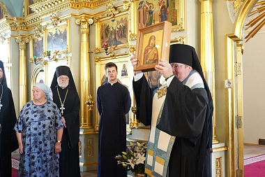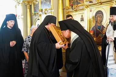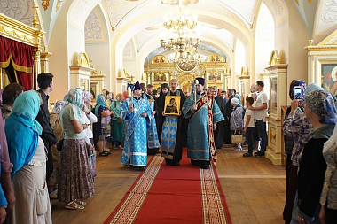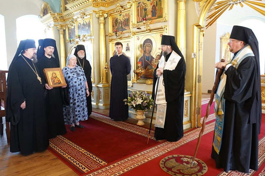 По окончании Литургии епископ Игнатий возглавил крестный ход к скиту в честь Коневской иконы Божией Матери, где в сослужении епископа Мелетия совершил водосвятный молебен.