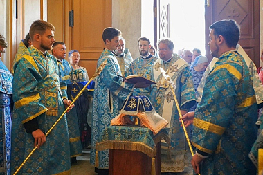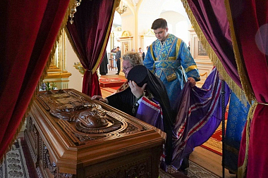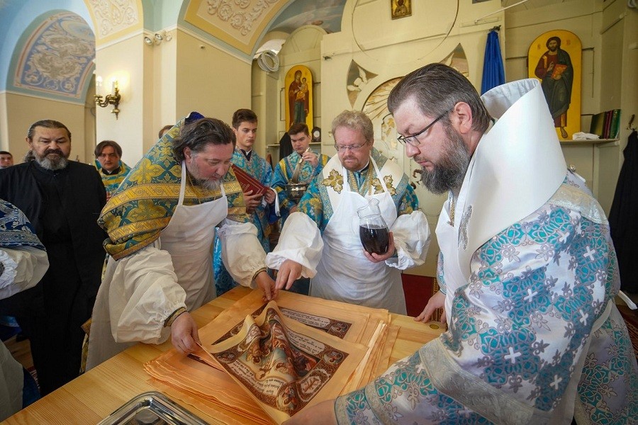 Его Преосвященству сослужили епископ Рославльский и Десногорский Мелетий, наместник Коневского монастыря архимандрит Александр (Арва), братия обители, клирики Санкт-Петербургской митрополии.