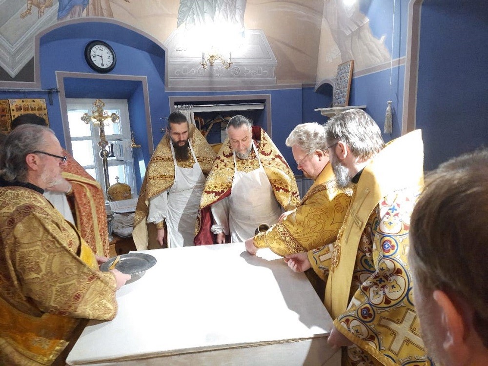 Преосвященным владыкам сослужила братия монастыря во главе с наместником обители архимандритом Александром (Арвой), а также клирики Выборгской и Рославльской епархий.