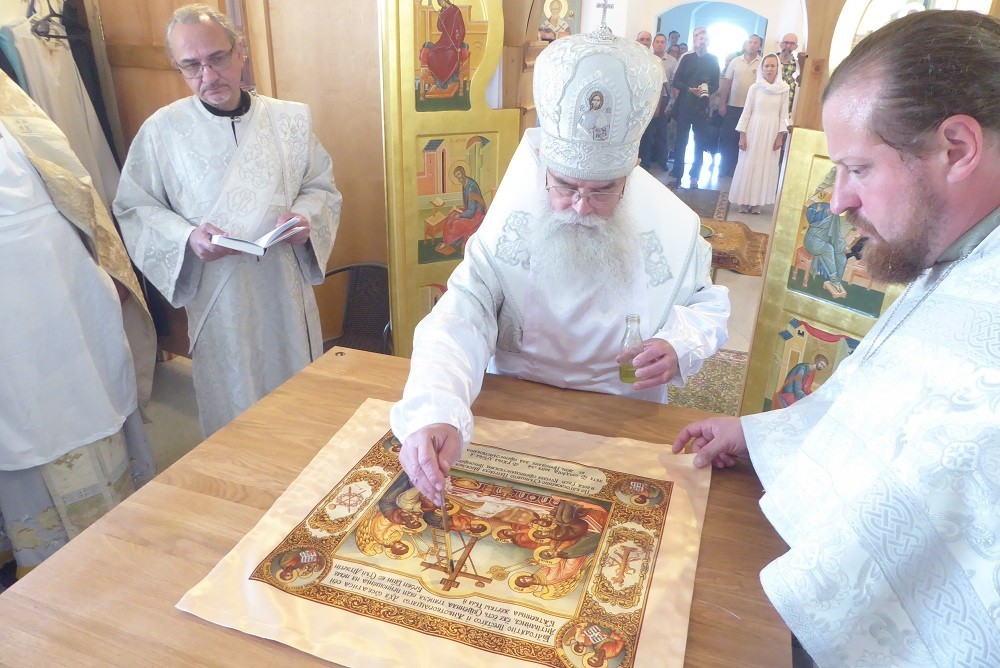 После освящения состоялся крестный ход вокруг храма. Затем началась Литургия в новоосвященном храме. По завершении Литургии было совершено славление прп. Ионе Клименецкому у раки с его мощами.