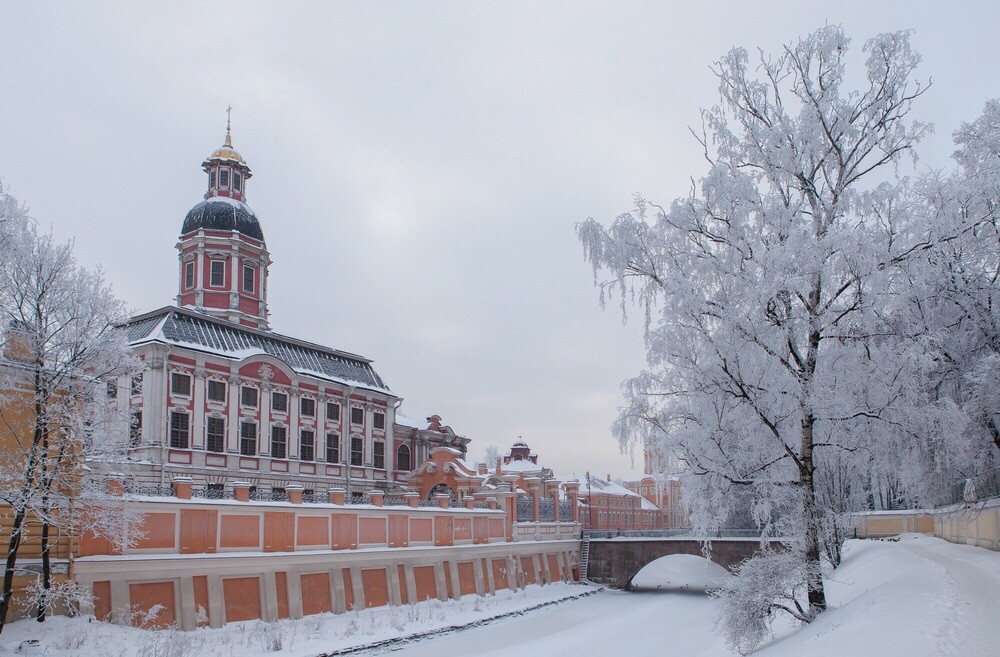 Здание двухэтажной Благовещенской Александро-Невской церкви – первое по времени каменное сооружение ансамбля, один из самых характерных памятников петербургской архитектуры начала XVIII века. Верхний храм был освящен 12 сентября 1724 года. В тот день сюда по указу императора Петра I были торжественно доставлены из Владимира мощи святого. В Александро-Невском храме святыня находилась до постройки в 1790 году Свято-Троицкого собора.