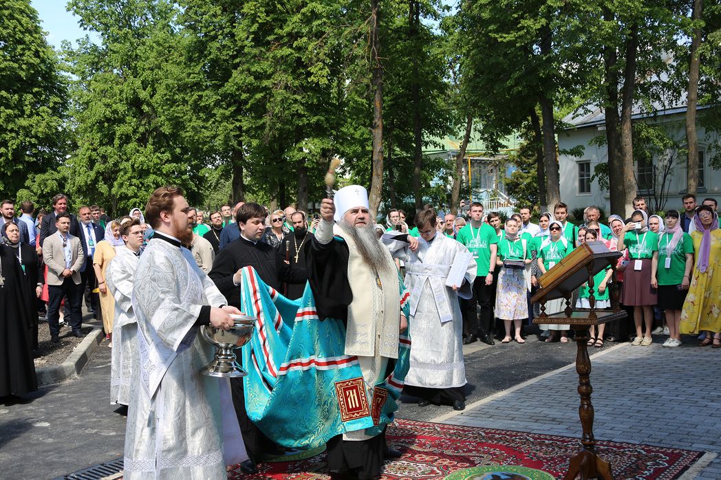 На освящении присутствовали председатель попечительского совета по возрождению Саровской и Дивеевской обителей, первый заместитель руководителя администрации Президента России Сергей Кириенко, член попечительского совета, заместитель председателя Правительства РФ Дмитрий Чернышенко, директор АНО «Управляющая компания по развитию Саровско-Дивеевского кластера» Игорь Филиппов, директор проектного центра Московского архитектурного института (МАРХИ) Алексей Капустин, а также участники проходящего с 3 по 5 июня в Дивеевской обители международного форума «Наследие преподобного Серафима Саровского как основа жертвенного служения», посвященного подведению итогов конкурса «Волонтер преподобного Серафима Саровского 2020/2021».