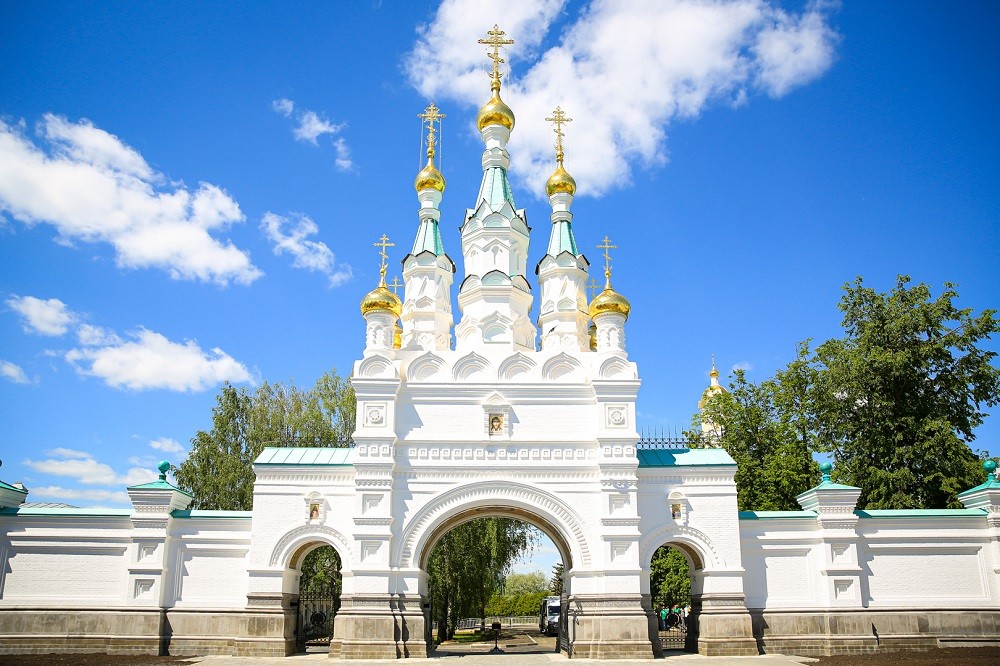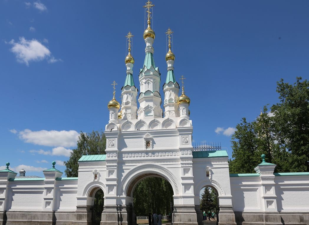 Теперь планируется вновь возвести монастырскую стену (но уже в других границах), и Саровские врата станут неотъемлемой частью ансамбля обители. Ворота состоят из трех арок, изнутри декорированных мозаичными панно, а сверху увенчанных семью луковичными куполами. Они выполнены в стиле русского узорочья XIX и ХХ веков.