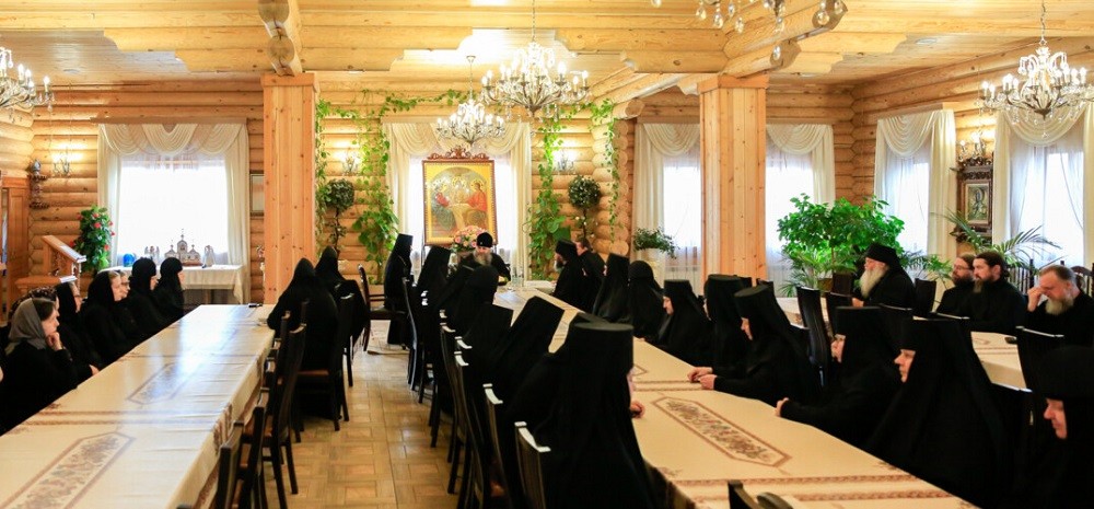 В беседе участвовали настоятельница Николаевского монастыря игумения Филарета (Шевченко), настоятель Спасо-Преображенского мужского монастыря игумен Феодосий (Какуркин), настоятельница архиерейского подворья Новодевичьего Алексия, человека Божия, монастыря монахиня Феогноста (Гончарова) и насельники этих обителей.