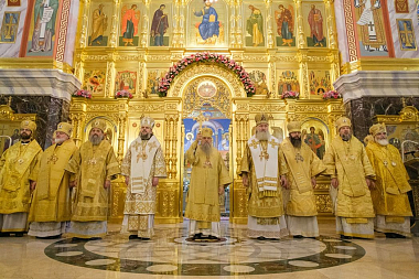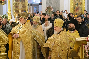 Его Высокопреосвященству сослужили: председатель Синодального отдела по монастырям и монашеству, наместник Донского ставропигиального монастыря г. Москвы митрополит Каширский Феогност, митрополит Тверской и Кашинский Амвросий, митрополит Смоленский и Дорогобужский Исидор, архиепископ Калининградский и Балтийский Серафим, епископ Кронштадтский Назарий, епископ Краснослободский и Темниковский Климент, епископ Тихвинский и Лодейнопольский Мстислав, епископ Зеленоградский Савва, епископ Петергофский Силуан, епископ Озерский Порфирий, протоиерей Геннадий Зверев, протоиерей Геннадий Бартов, старший священник иерей Дионисий Харин, иерей Павел Ермошкин, духовенство обители и другие священнослужители.