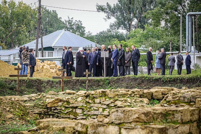 В ходе экскурсии был осмотрен фундамент разрушенного в 1920-е годы соборного храма Иоанна Предтечи, обнаруженный во время археологических работ на территории воссоздаваемого монастыря.