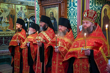 Всенощное бдение возглавил митрополит Ставропольский и Невинномысский Кирилл, являвшийся первым настоятелем Благовещенского монастыря после его возрождения в 1993 году. Ему сослужили викарий Нижегородской епархии епископ Балахнинский Илия, епископ Лысковский и Лукояновский Силуан, нынешний настоятель этой обители архимандрит Александр (Лукин), настоятель нижегородского Вознесенского Печерского монастыря архимандрит Тихон (Затёкин), настоятель Свято-Успенского монастыря Саровская пустынь игумен Никон (Ивашков), исполняющий обязанности наместника арзамасского Спасо-Преображенского монастыря игумен Феодосий (Какуркин) и другие клирики Нижегородской епархии.