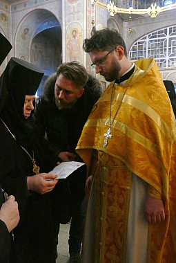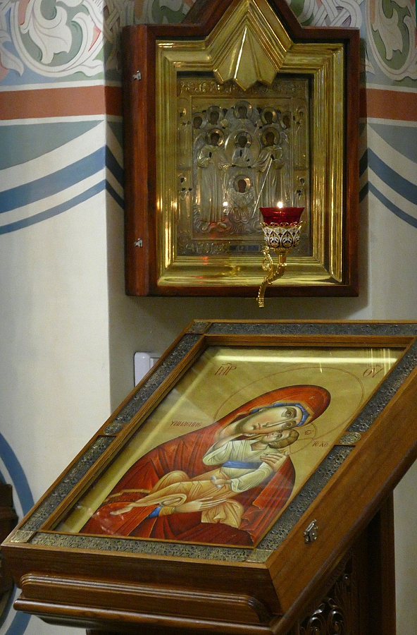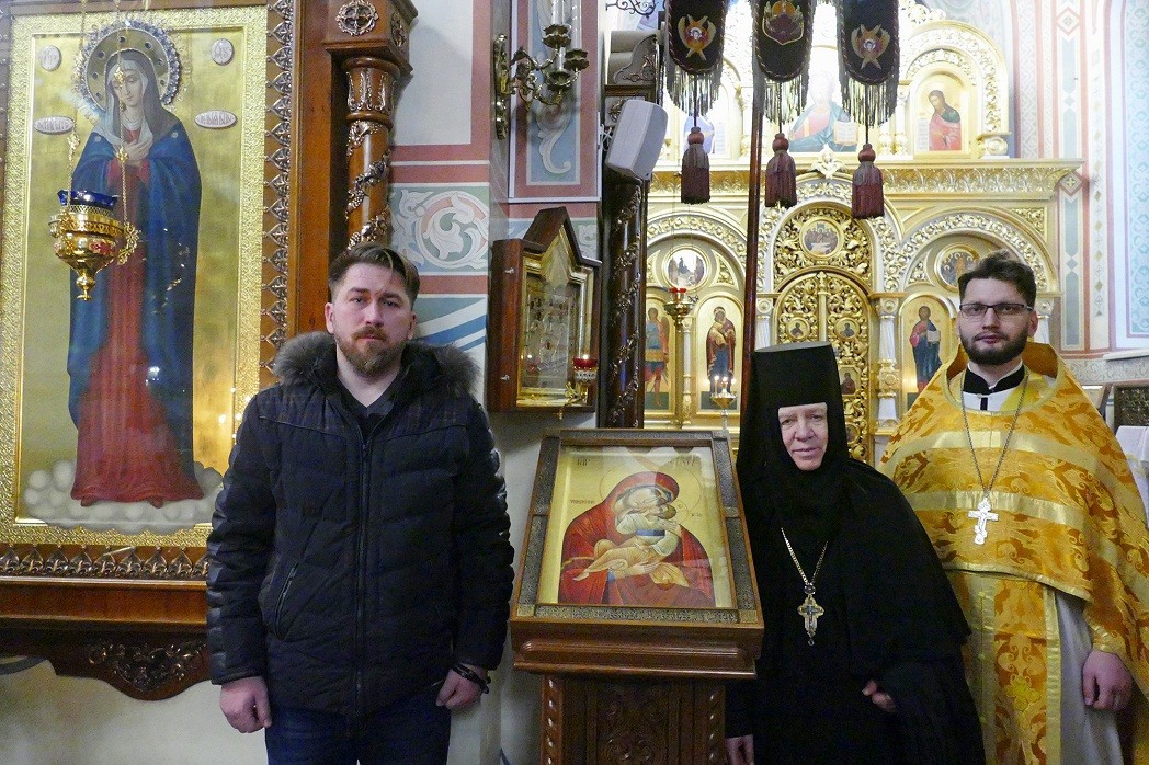 Святой образ привезли в Дивеево клирик краснодарского храма в честь иконы Божией Матери «Целительница» иерей Вячеслав Клименко и прихожанин этого храма Михаил Валерьевич Шмелев, которому и вручили во время паломничества свой дар для Дивеева пантелеимоновские братия.