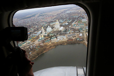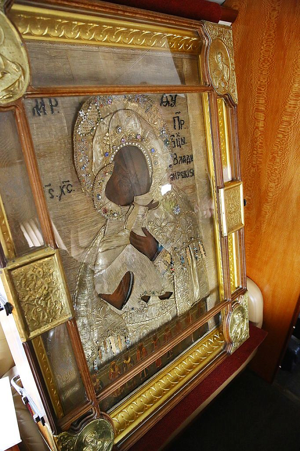В полете глава Нижегородской митрополии совершил молебное пение во время губительного поветрия и смертоносной заразы с акафистом Пресвятой Богородице перед чтимым списком Владимирской-Оранской иконы Божией Матери из Оранского мужского монастыря.
