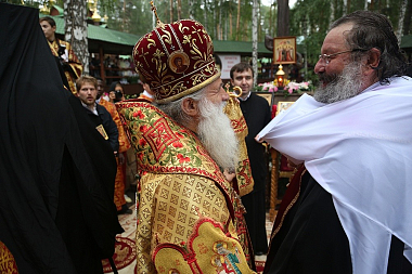 Около 07.30 часов утра колонна крестного хода во главе с духовенством достигла монастыря во имя Святых Царственных страстотерпцев на Ганиной яме. Паломников и духовенство братия монастыря встречала колокольным звоном.