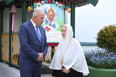 Наталью Кочанову, а также губернатора Гродненской области Владимира Степановича Караника и помощника Президента Юрия Хаджимуратовича Караева встретила настоятельница Гродненской обители игумения Гавриила (Глухова). С высокими гостями матушка игумения обсудила вопросы, связанные с предстоящим празднованием 30-летия возрождения монастыря, которое предполагается провести 20-21 сентября в престольный праздник обители — Рождество Пресвятой Богородицы.