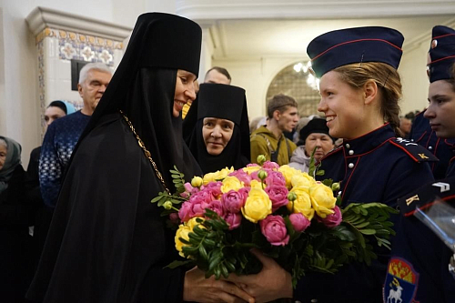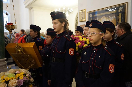С утра участники военно-патриотического клуба (кадетского казачьего отряда) в честь Святителя Николая при Черноостровском монастыре помолились на Литургии в Казанском Девичьем монастыре Калуги, где праздник в честь Казанской иконы Божией Матери является престольным. Они разделили радость от пребывания на службе с гостями монастыря.