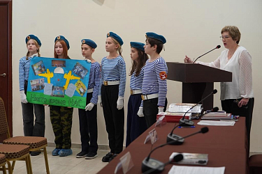 После просветительской лекции началась работа круглого стола. Каждый из кадетских отрядов представлял несколько работ. Например, выступавший первым, отряд юнармейцев из Ильинской средней школы представил два стихотворения «Память жива», «Пятиконечная звезда» и исследовательский проект «Звезда памяти». Одно из стихотворений ребята написали сами, вчетвером – это групповое сочинение. Автор второго стихотворения – один из педагогов Ильинской школы. Проект «Звезда памяти» посвящен современному использованию восприятию образа звезды как знака воинской славы и памяти о воинах, отдавших свои жизни за Отечество.