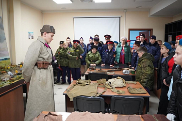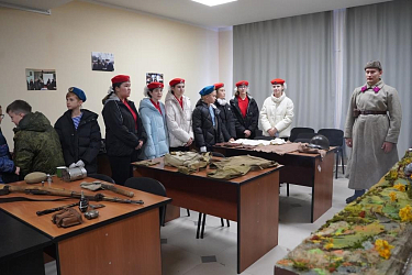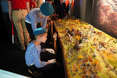 После презентации проектов и стихотворений отряды отправились на экскурсию по интерактивному музею «Малоярославец – город двух великих побед», где для них были представлены выставка двух диорам – «Победоносного Малоярославецкого сражения» и «Боев на Ильинских рубежах». У диорамы боев на Ильинских рубежах для ребят была организована интерактивная площадка с исторической реконструкцией, которая знакомила с бытом и амуницией солдат РККА и вермахта. Реконструкторы рассказывали ребятам о ходе боев на Варшавском шоссе, показывая на макете, как продвигались войска, где располагался в то или иное время штаб Ильинского и в целом Малоярославецкого участка Можайской линии обороны, называли имена героев-защитников, объясняли тактику и стратегию обороны Москвы и затем – перехода в контрнаступление.