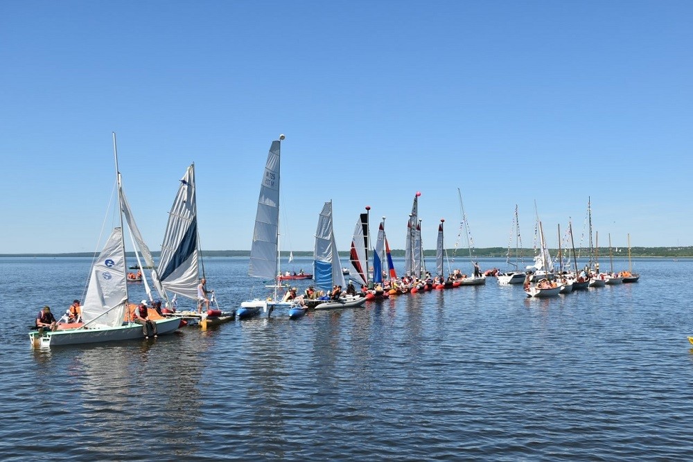 Суда по реке Трубеж дошли до озера. В параде судов приняли участие 9 ялов, которым управляли кадеты Свято-Алексеевской пустыни.