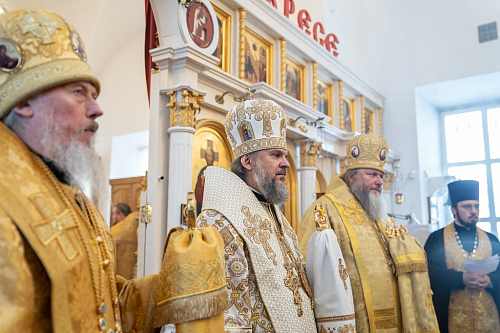 За Литургией архиереям сослужили: руководитель Административного секретариата Тверской епархии, ключарь Спасо-Преображенского кафедрального собора г. Твери иерей Сергий Будков, настоятель храма в честь Рождества Богородицы с. Поречье Калязинского района протоиерей Александр Мискин, клирик Кинешемской епархии иеромонах Сергий (Варнашов), наместник Старицкого Свято-Успенского мужского монастыря игумен Дамаскин (Леонов), настоятель Введенского храма бывшего Троицкого Калязинского Макарьева монастыря иеромонах Амвросий (Желябовский), благочинный Кашинского церковного округа, настоятель Вознесенского кафедрального собора протоиерей Александр Рычков, клирики Николаевского Клобукова женского монастыря иеромонах Макарий (Чусов), иерей Андрей Иванчин, клирики Спасо-Преображенского кафедрального собора г. Твери диакон Иоанн Зорин, протодиакон Роман Соколов, диакон Михаил Быков, клирик Кинешемской епархии диакон Антоний Замышляев, секретарь-референт митрополита Псковского и Порховского Матфея диакон Николай Арзуманов (сын покойного протоиерея Димитрия Арзуманова – первого священника и строителя Николаевского Клобукова женского монастыря).
