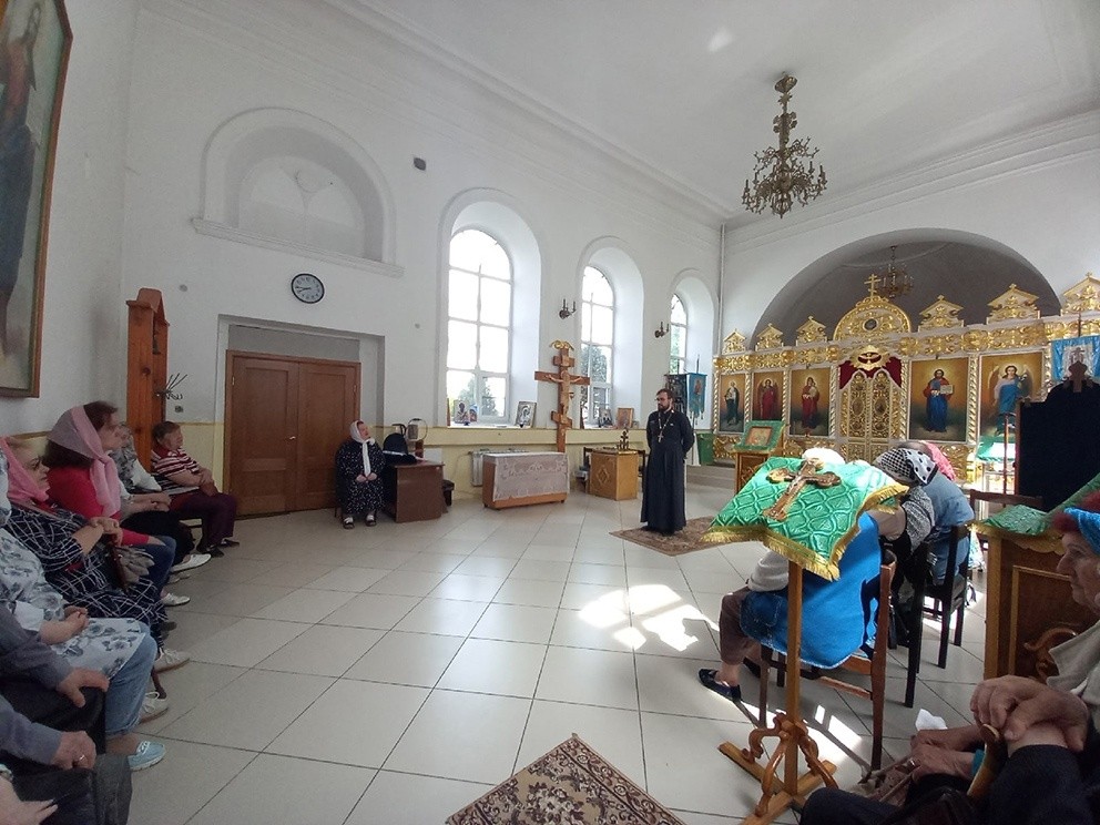 Встреча завершилась чаепитие в актовом зале, где гостям был показан фильм «Матронушка», ставший лауреатом фестиваля «Свет миру. Дети».