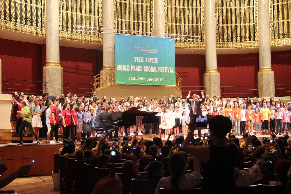 На следующий день детские и молодежные хоры из разных стран приняли участие в «концерте мира», поддержав лозунг фестиваля «Собираемся вместе, чтобы петь, петь ради лучшего будущего».