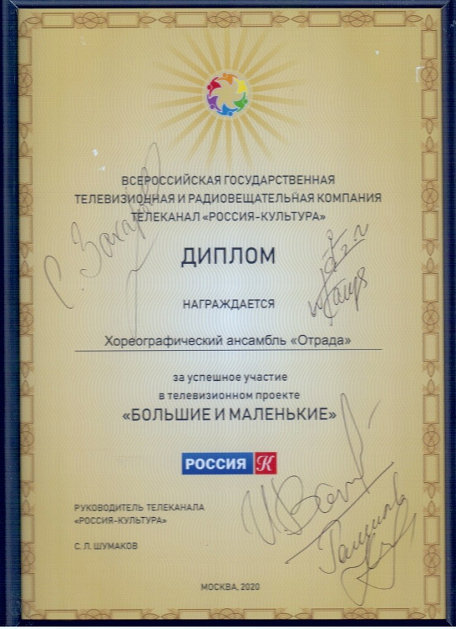 13 августа 2020 года хореографический коллектив «Отрада», воспитанницы детского православного пансиона при Свято-Никольском Черноостровском женском монастыре приняли участие в съемках телепрограммы «Большие и маленькие» телеканала «Культура».