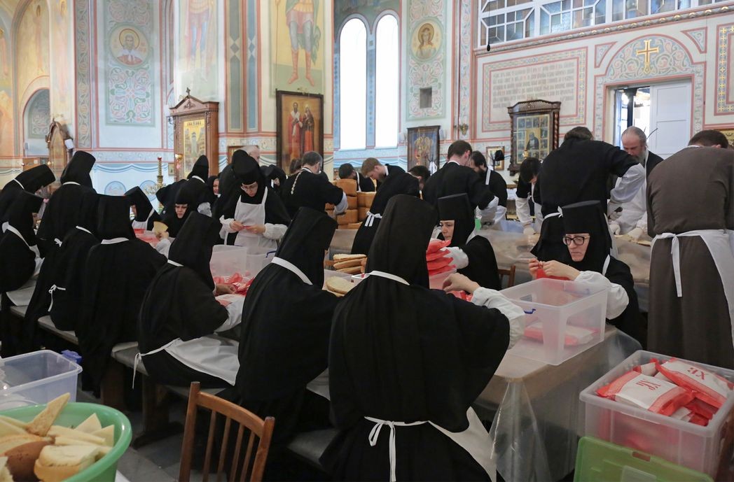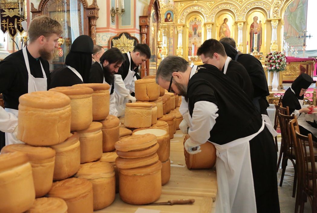 В раздроблении артоса участвовали только священнослужители. Им помогали старшие сестры – монахини и инокини, одетые в полное монашеское или иноческое облачение.