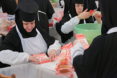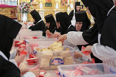 Сестры упаковали нарезанные кусочки артоса в специально изготовленные для этого нарядные бумажные мешочки. Завтра после молитвы на раздробление артоса, которая будет прочитана по окончании поздней Божественной литургии, состоится раздача артоса.