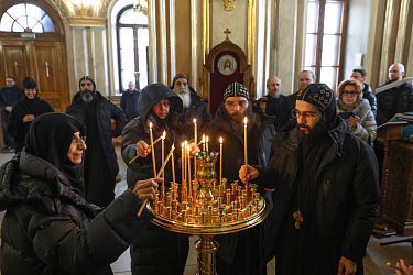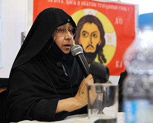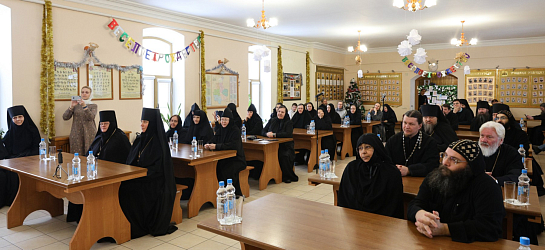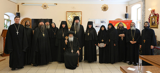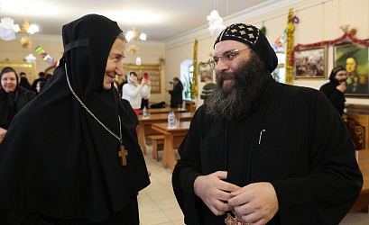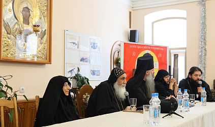 После трапезы в аудитории воскресной школы прошла встреча Коптской делегации с монашествующими Давидовой пустыни и трех женских монастырей во главе с игумениями Серпуховского Владычнего и Белопесоцкого монастырей, и Серафимо-Знаменского скита. Также присутствовало духовенство из Чеховского благочиния.