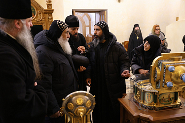 В архиерейском доме состоялась официальная встреча с главой муниципального Чеховского округа Михаилом Собакиным на которой стороны обменялись подарками. Затем отец Сергий провел экскурсию по храмам монастыря, где гости смогли приложиться к святыням обители.