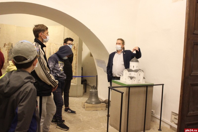 Экскурсовод Олег Федоров рассказал ребятам и о том, как в XVI веке в ходе большого ремонта и переустройства храма фрески забелили, и лишь во второй половине XIX века они вновь были обнаружены.