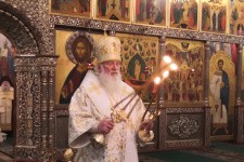 Его Высокопреосвященству сослужили и.о. наместника обители иеромонах Антоний (Битьмаев), насельники монастыря иеромонахи Борис (Григорьев) и Пантелеимон (Шахтахтинский), клирик Софийского собора иерей Николай Полозов.