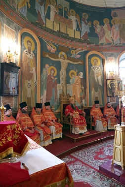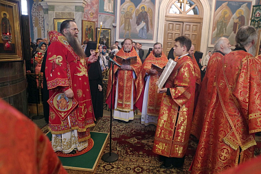 Правящему архиерею сослужили клирики Нижегородской епархии.