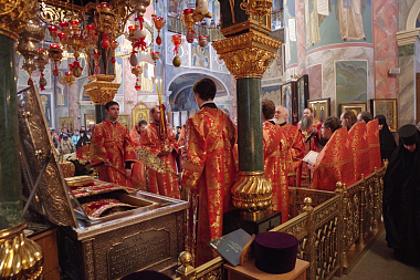 За богослужением вместе с многочисленными паломниками и прихожанами молилась настоятельница монастыря игумения Сергия (Конкова), сестры обители, руководитель педагогического направления Благотворительного фонда преподобного Серафима Саровского Ольга Бараева и участники открывшейся накануне в Дивееве педагогической конференции «Наследие преподобного Серафима Саровского и актуальные вопросы духовно-нравственного просвещения».