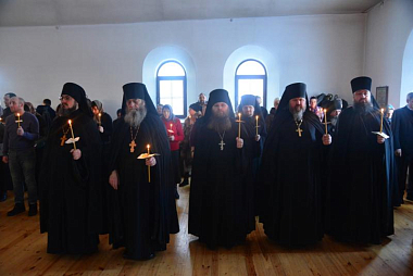 В богослужении участвовали наместник Свенской обители игумен Алексий (Тюрин) с братией.