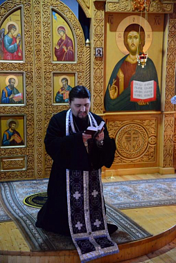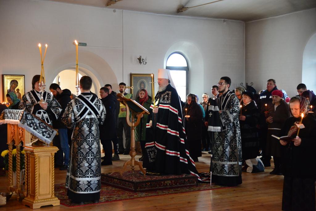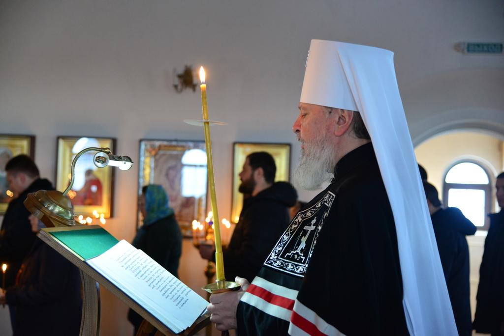 За аналоем, установленным в центре храма, владыка Александр прочел вторую часть покаянного канона.