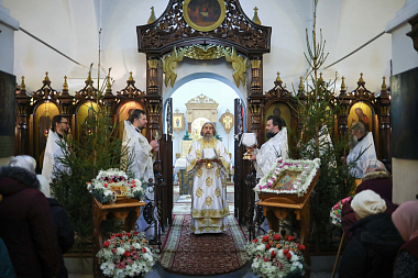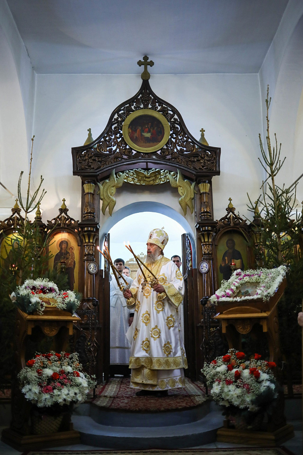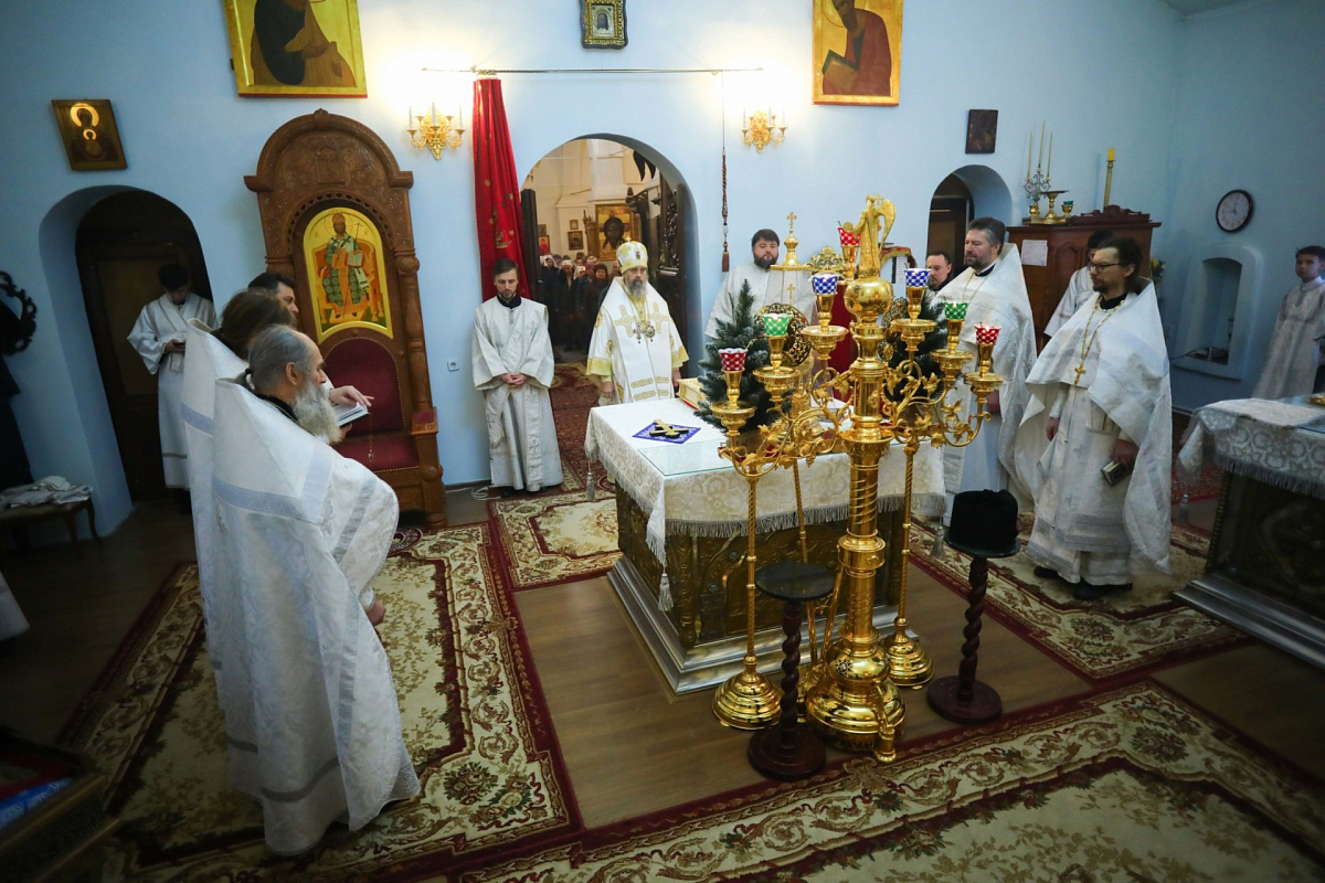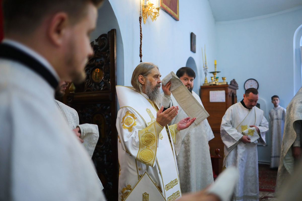 Его Высокопреосвященству сослужили настоятель обители игумен Агафангел (Болдин) с братией в священном сане и духовенство благочиния.