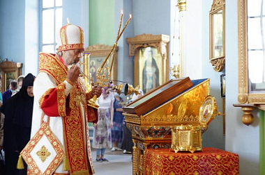 По окончании Литургии были совершены торжественный крестный ход вокруг собора обители и славление перед иконой празднуемого святого.
