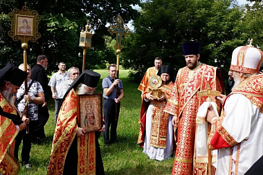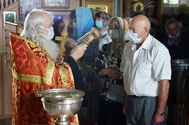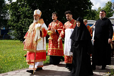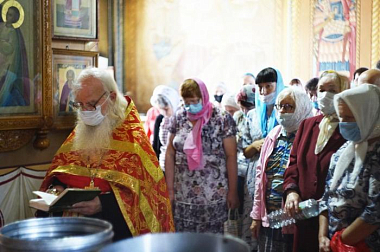 Затем духовник обители игумен Михаил отслужил молебен с водосвятием в храме в честь преподобного Никандра Псковского.