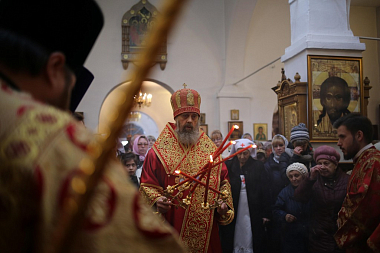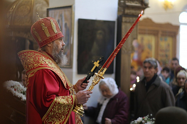 Затем Его Высокопреосвященство обратился к предстоящим со словом мира и любви о Христе: