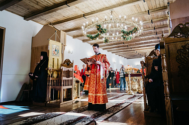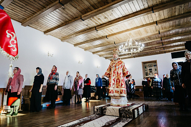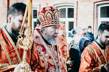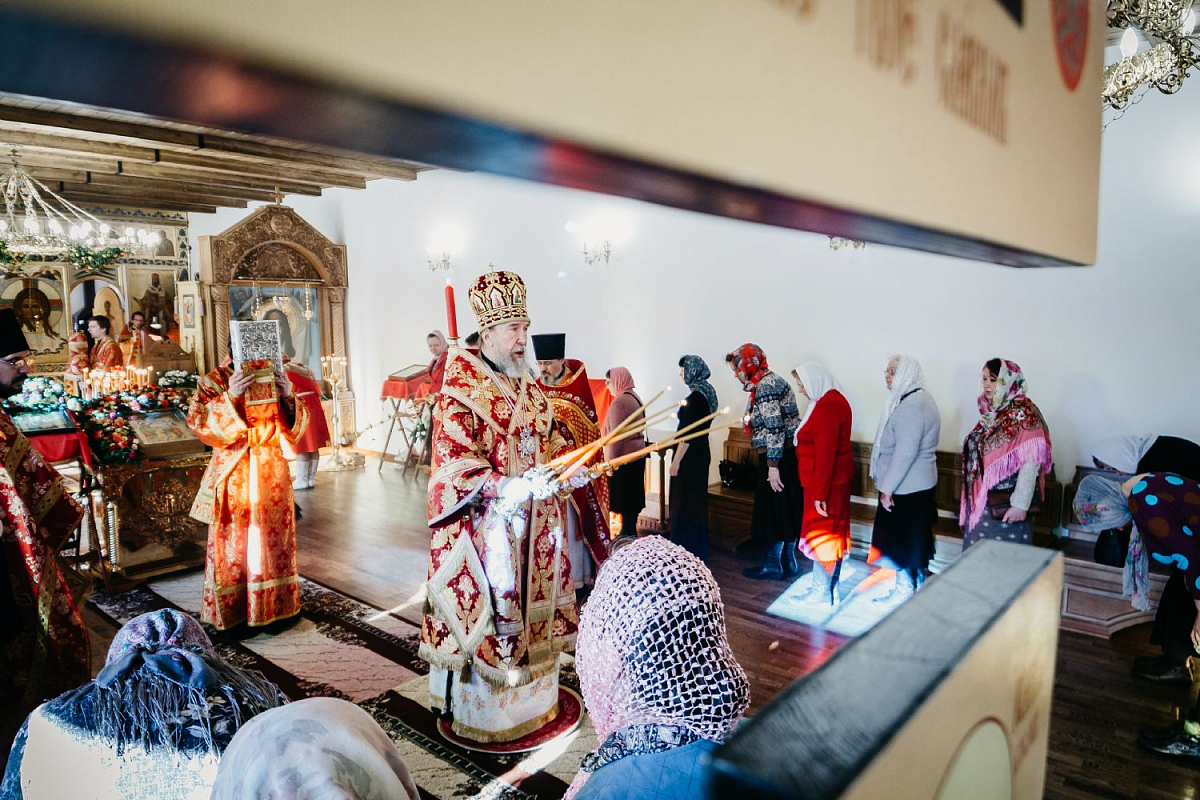 За Литургией архипастырю сослужили ключарь Спасо-Вознесенского собора протоиерей Дмитрий Савельев, секретарь Архиерейского совета Симбирской митрополии иеромонах Филарет (Кузьмин) и духовенство обители.