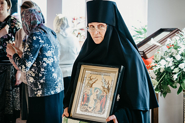 «Христос воскресе! Дорогие братья и сестры! Дорогая матушка! Третий день Пасхи посвящен празднованию Царицы Небесной в честном образе Ее Иверском. Богородица, как никто другой, переживала скорбь у Креста Господня. Совершая празднование Иверской иконе Божией Матери, мы невольно вспоминаем, как Она явилась на горе Афонской. Божия Матерь также была гонима, лик Пречистой был прободен копьем воина. Но Царица Небесная не отвернулась от рода христианского. Она всегда пребывала с нами и будет пребывать до скончания века. Вместо того чтобы обрушить гнев на мир, который гнал Ее Сына и гнал Ее, Она проявляет милость, приближается к горам Афона и становится охранительницей веры Христовой, охранительницей того учения, которое принес на землю Господь и Спаситель наш. Мы должны благодарить Матерь Божию за то, что Она, несмотря на все наши греховные поступки, несмотря на всю нашу жизнь греховную, прощает нас, молится за нас перед Сыном Своим и Богом. От нас требуется, чтобы мы, невзирая ни на что, просили Господа укрепить нас. Своими силами человек не может спастись. Мы вручаем себя водительству Божию и водительству Его Пречистой Матери, Которая является Вратарницей, каждому человеку отверзающей двери райские.