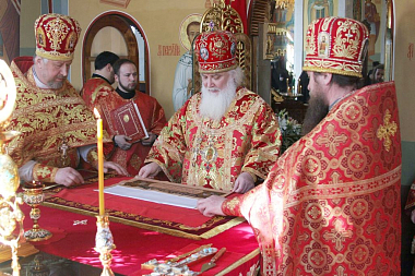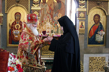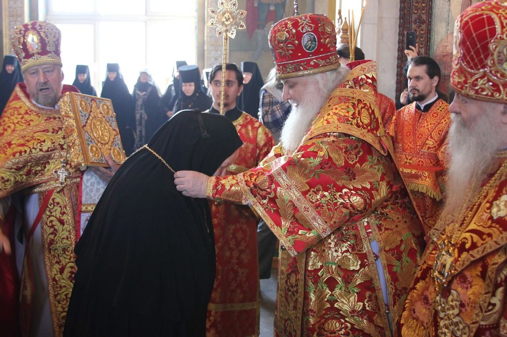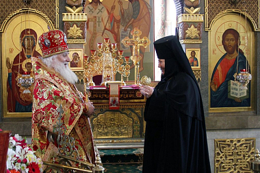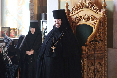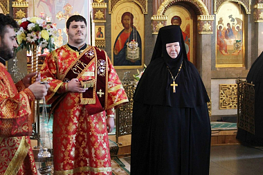 На малом входе на настоятельницу обители игумению Зинону по благословению Святейшего Патриарха Московского и всея Руси Кирилла был возложен крест с украшениями за усердное служение Церкви Христовой и в связи с памятной жизненной датой.