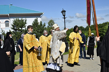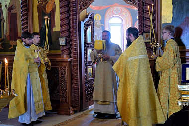 В монастырском храме святых первоверховных апостолов Петра и Павла Его Высокопреосвященству сослужил секретарь епархии иеромонах Николай (Белозеров), клирик Спасо-Преображенкого собора иерей Алексей Шарапа.